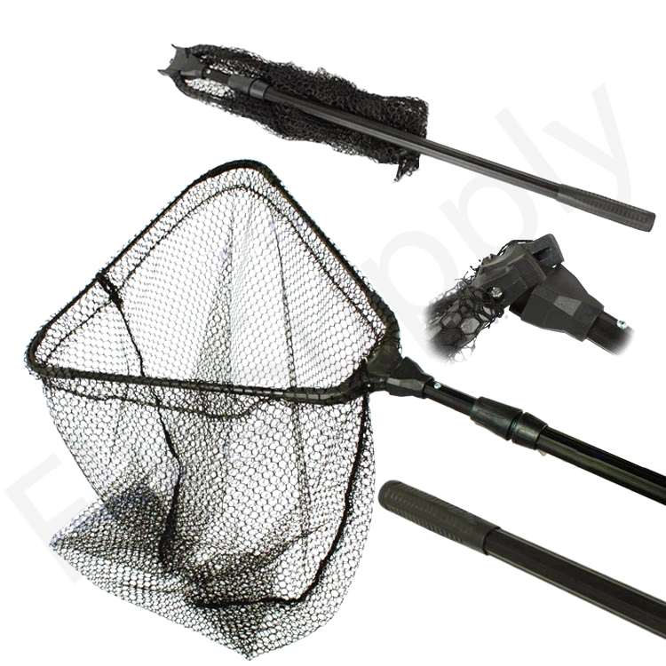 The Euro Flies Folding Landing Net Trout is a black anodized landing net with a black fine mesh net. The handle of the net is telescopic and the arms are collapsible. This makes the Euro Flies Folding Landing Net Trout compact and easy to carry along at the waterfront.
