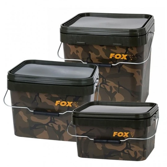De handige buckets van Fox zijn ideaal voor het bewaren van boilies, particles en lokvoer. Dankzij een afsluitbare deksel kan je eenvoudig het voer vrij houden van ongedierte en dankzij het handvat kan je ook gemakkelijk lopen met de emmer. De bucket is voorzien van mooie camo kleuren. Het vierkante ontwerp is veel gemakkelijk voor transport op een barrow dan een traditionele ronde emmer. Onmisbaar voor iedere karpervisser!