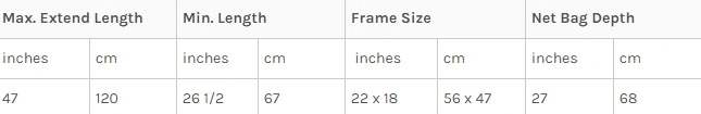 Net bag depth: 68 cm