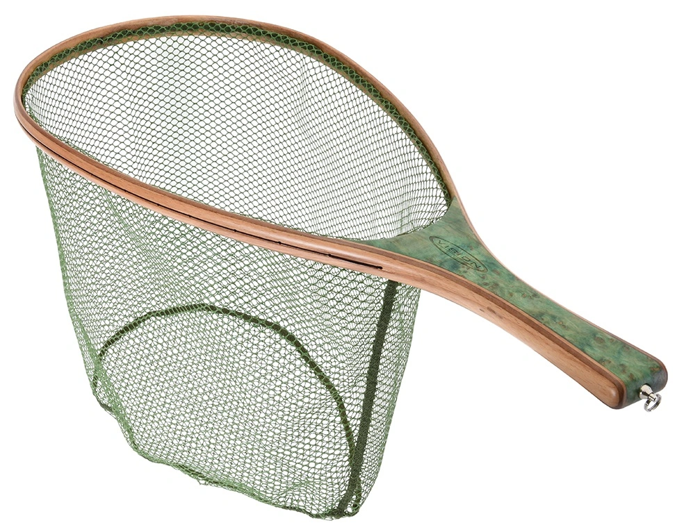 The deep rubber net of the Vision Green Wooden Landing Net With Rubber Net is big enough for trophy size trout.